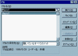 (2)上図のダイアログが表示されるので、実行するマクロ名を選び「実行」を
