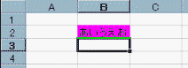 すると再度"B2"へ「あいうえお」が表示されます。以下に説明する。