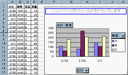 Excel2000ではピポットグラフを表示できるようになりました。通常ピホットテ−ブル上で