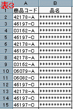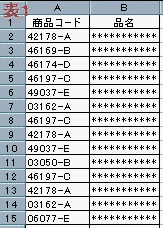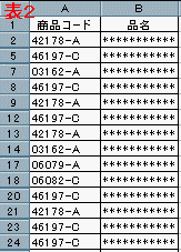 ○●●表1のデ−タから"-A""-C"以外を非表示にすると表2となる。