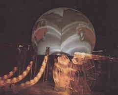 2階に降りると池の中央に球体