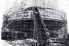 コアー部鉄骨終了時には早や梅雨期の影響を