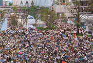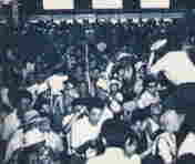 駅自体が人ごみでマヒしていた。会場では史上最大の