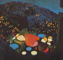 海の緑に変わって陸地の新緑に