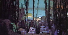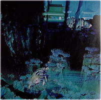 亀に乗った浦島太郎が海中をぐるぐる回っている。