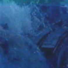 ダムの決壊 人家を襲う鉄砲水。渦巻く波。
