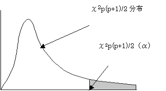 (2)検定統計量χ2は自由度p(p+1)/2のχ2 分布に従う。
