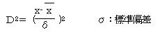 1変量時のマハラノビスの距離をD2とすると、