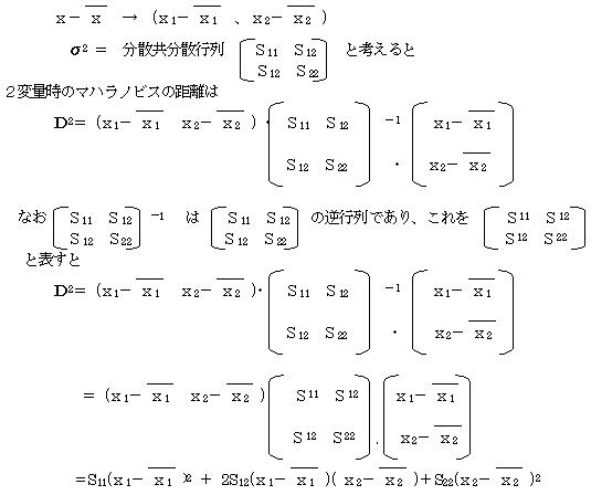 同様にして変量p個の時のマハラノビスの距離は
