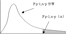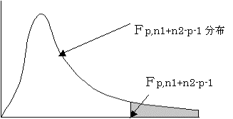 (2)検定統計量Fは自由度1,n1+n2−p−1のF分布に従う。