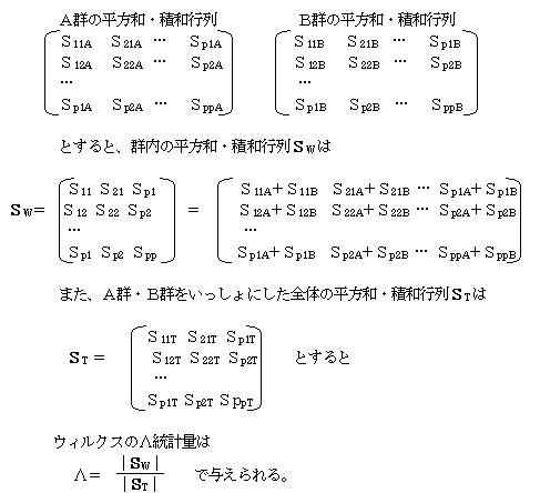 多変量時の群間の変動を示す量として、ウィルクスのΛ統計量がある。
