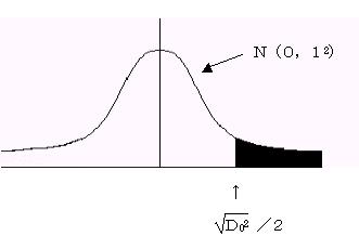 いまP1をA群の標本であるにもかかわらず、B群の標本であると判定する間違いの確率。 またP2をB群の標本であるにもかかわらず、A群の標本であると判定する間違いの確率とすると誤判別の確率は、P1=P2=標準正規分布の
