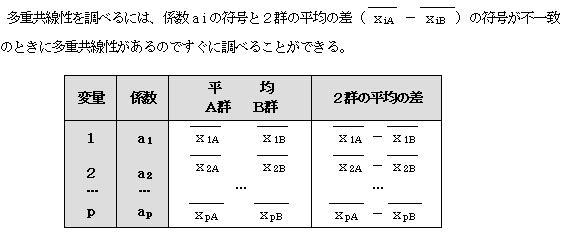 「係数aiの符号」と「2群の平均の差の符号」を見れば、多重共線性が分かる。