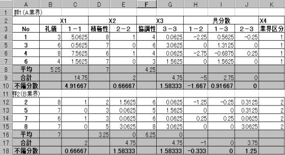 4.1.1 群1(A業界)・群2(B業界)それぞれの分散・共分散を求める