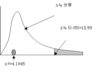 4.1.2 検定統計量をχ2 として、この検定統計量を求める。