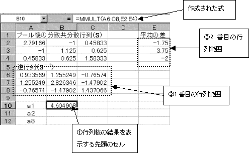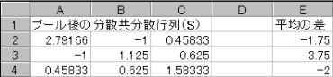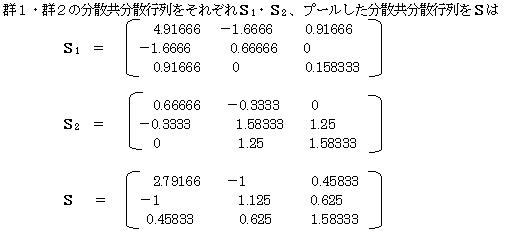 プール後の分散共分散行列Sと、平均の差の行列を入力する。
