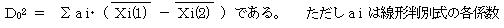 以上の変数増加法により最良の線形判別式は、Y=5.1685・X2−3.30337・X3−9.14607である。