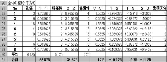 上の表をもとにして、判別分析を実施してA業界とB業界の社員間で印象が違うかどうか調 べる。A業界を「1」・B 業界を「2」と質的区分データに置き換える。文字データから質的数値データに置き換えたデータを使用して判別分析を実行する。