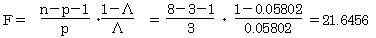 Λ統計量から求めた検定統計量と、マハラノビスの距離から求めた検定統計量は一致する。