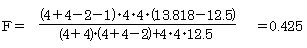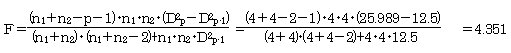 p=3 であるから n1+n2−p−1=4+4−3−1=4 自由度 3,4 のF分布に従う。