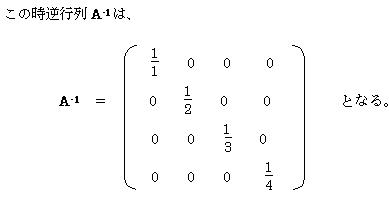 正方行列で、対角成分以外はすべて0のような行列を対角行列という。元の行列Aが、この対角行列である時、その逆行列は非常に簡単となる。