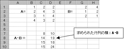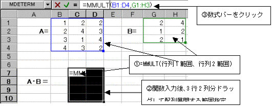 行列の積は、その順番が重要であるから、A・Bを求める時には、行列Aの範囲を行列1の範囲にし、行列Bの範囲を行列2の範囲にしなければならない。