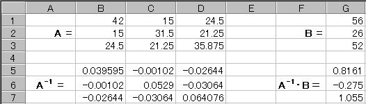 表計算で簡便的に実施する方法としては、行列式を使用して求めることはできる。