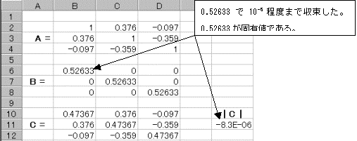 主成分分析・正準相関分析・数量化2類・3類などの分析を実施する時には、行列演算で固有値を求めなければならない。固有値を求めるのは、ヤコビ法、べき乗法、三重対角化法などがあるが、いずれも演算を繰り返し実施しなければならず、表計算でこの作業を実施することは難しい。