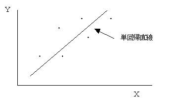 このような仮定下で単回帰式を Y=b1・x+b0 とする。