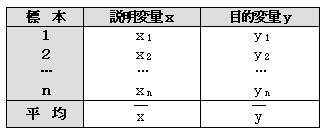 正規母集団から抽出して得られた標本データx・yが下表のようにあり、x・y間にある関係があるものとする。