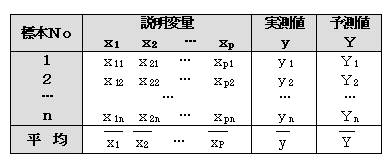 Yi=b1・x1i+b2・x2i+…+bp・xpi+b0 とする。