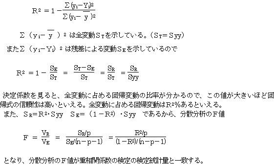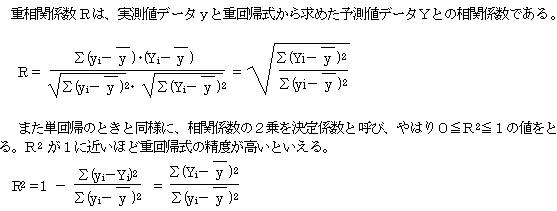 相関係数Rの2乗は決定係数と呼ばれているが、この決定係数を利用して回帰式の信頼性 を見る。
