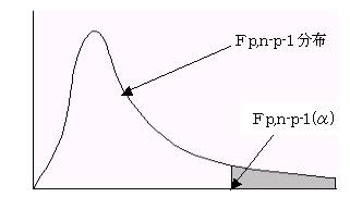 分散比Fは、自由度p,n−p−1のF分布に従うので、これを利用して単回帰の場合と同様に回帰式の信頼性を検定することができる。