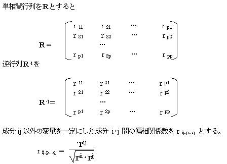 多変量データにおいて、任意の2変量間の単純な相関係数を単相関係数というが、これは相関をとる2変量以外の変量が、その2変量に影響を与えている相関係数である。これに対し、相関を求める2変量以外の他の変量の影響を取り除いた2変量間の相関係数を偏相関係数という。