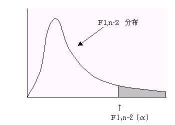 F≧F1,n-2 (α)であれば、仮説H0を棄却し、対立仮説H1:回帰直線は予測に役立つを採択する。つまり、この回帰直線は予測に役立つとする。