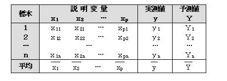 説明変量がP個ある時の多変量データが下のようになっているとする
