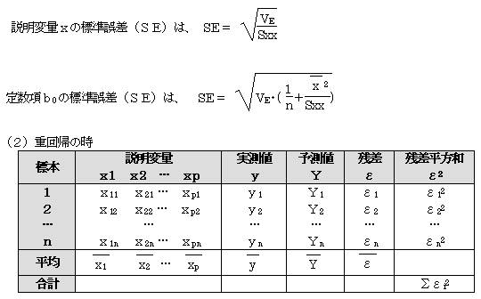 但しn:標本数 p:説明変量の個数 SE(残差平方和):煤iyi−Yi)2