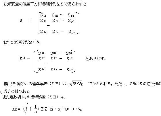 以下同様にしてこれを何回か繰り返すと係数b1 は正規分布に従うことが分かっている。同様にb2…bpについてもそれぞれ正規分布に従う。この時の標準偏差を標準誤差という。