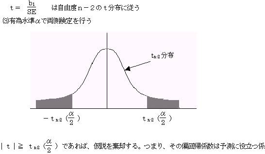 母偏回帰係数βi=0を検定することにより、その偏回帰係数が予測結果に影響を与えうる係数かどうかの検定を行う。
