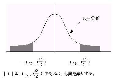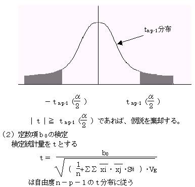 (2)検定統計量tは自由度n−p−1のt分布に従う