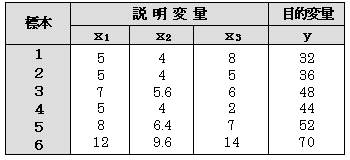 x2=x1×0.8 となっており、x2変量は目的変量yに何の寄与もしていないので不用な変量であるといえる。x1変量を使うとき、x2変量を落として回帰式を求めなければならない。