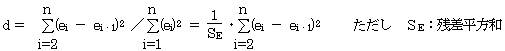 残差の連なりがランダムであるかどうかを検定するには、ダービン・ワトソン比を用いる方法がある。ダービン・ワトソン比をdとすると