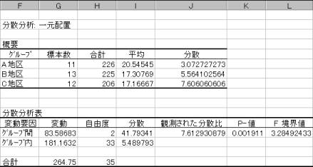 F2,33•ª•z‚Ì5%“_‚Í3.28492433‚Å‚ ‚éBŠÏ‘ª‚³‚ꂽF’l‚Í7.612930879‚Å‚ ‚èA‚±‚Ì’l‚Í5%“_F’l‚æ‚è‚à‘å‚«‚¢B‚Ü‚½ŒÂ‚ÌŽž‚ÌŠm—¦:0.001911‚Å‚ ‚肱‚Ì’l‚Í0.05‚æ‚謂³‚¢B‚±‚ê‚©‚ç‹A–³‰¼à‚ðŠü‹p‚·‚éB‹‰ŠÔ•Ï“®‚ÍŒø‰Ê‚ª‚ ‚邯‚¢‚¦‚éB3ŒQ‚̕ꕽ‹Ï‚É·‚ª‚ ‚邯‚¢‚¦‚éBˆî‚̬’·‚Í’nˆæ‚É‚æ‚è·‚ª‚ ‚邯‚¢‚¦‚éB‚µ‚©‚µ‚ǂ̒nˆæŠÔ‚ŕꕽ‹Ï‚É·‚ª‚ ‚é‚©•s–¾‚Å‚ ‚éB