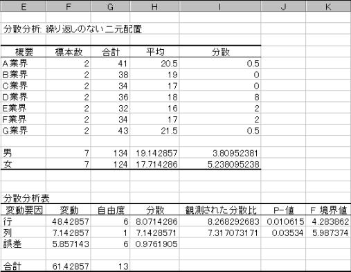 ŠÏ‘ª‚³‚ꂽF’l:8.268‚ÍAF6,6(0.05):4.2838‚æ‚è‚à‘å‚«‚¢B‚Ü‚½‚±‚ÌŽž‚ÌŠm—¦:0.00106‚Í0.05‚æ‚è‚ଂ³‚¢A‚æ‚Á‚ÄŠü‹pˆæ‚É“ü‚éB‹A–³‰¼à‚ðŠü‹p‚·‚éB‹‰ŠÔ•Ï“®A‚ÍŒø‰Ê‚ª‚ ‚邯‚¢‚¦‚éB‹ÆŠEŠÔ‚ʼn”C‹‹‚ɈႢ‚ª‚ ‚邯‚¢‚¦‚éB