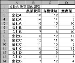 4ŽÐ‚ÌA•¨‚ÌŽíŽq‚Ì”‰è󋵂ð”_–òŽg—pE—L‹@Í”|E–³”_–ò‚Ì3Ží—Þ‚É•ª‚¯‚Ä3‰ñ‚¸‚Šϑª‚µ‚½BA•¨‚Ì”‰è󋵂ɂ‚¢‚ÄA…€A(ƒOƒ‹[ƒvAF‰ïŽÐ‚̈Ⴂ)‚Æ…€BiƒOƒ‹[ƒvB:Í”|•û–@‚̈Ⴂj‚É‚æ‚èA”‰è󋵂ɈႢ‚ª‚ ‚é‚©‚Ü‚½ˆöŽqŠÔ‚ÌŒðŒÝì—p‚Í‚ ‚é‚©‚ðA—Lˆ×Šm—¦5%‚ÅŒŸ’è‚ðs‚¤B