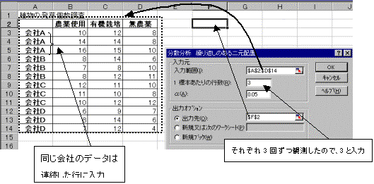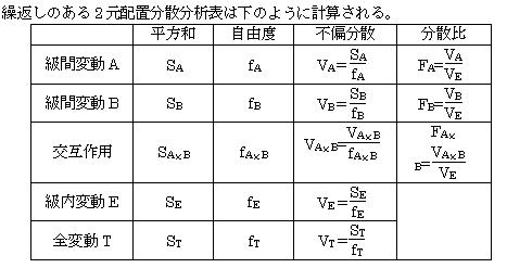 3ŒQˆÈã‚̕ꕽ‹Ï‚Ì·‚ÌŒŸ’è‚ðŽÀŽ{‚·‚鎞A‚»‚̃f[ƒ^‚ª‚Ù‚Ú³‹K•ª•z‚É]‚¢‚©‚‚΂ç‚‚«‚ð—^‚¦‚é—vˆö‚ª2‚Â(‹‰ŠÔ•Ï“®‚ð2‚Â)‚ ‚鎞‚ðl‚¦‚éB‚½‚¾‚µAˆöŽq‚Ì‘g‚݇‚킹‚É‚æ‚è‚΂ç‚‚«‚ɉ½‚ç‚©‚ÌŒø‰Ê‚ð—^‚¦‚éŒðŒÝì—p(‚¨ŒÝ‚¢‚ɉe‹¿‚ð—^‚¦‚éì—p)‚ª‚È‚¢‚Æ‚·‚éB‚±‚ÌŒðŒÝì—p‚ª”F‚ß‚ç‚ê‚鎞‚É‚ÍAŒJ‚è•Ô‚µ‚Ì‚ ‚é2Œ³”z’u•ªŽU•ªÍ‚ðŽÀŽ{‚·‚éB