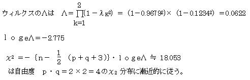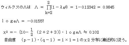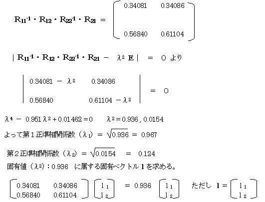 第2正準相関係数についても、λ2=0.124(固有値:0.0154)を使用して同様にして求める。
