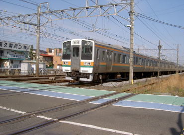 平塚駅の東京寄りの踏切。 一番手前の線路が専用線の線路。 |