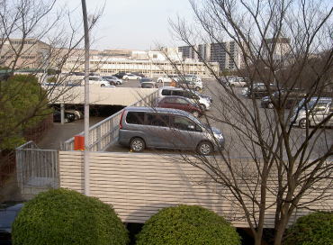 市道駅前通りに架かる八幡第1歩道橋から日産車体 工場を見下ろす。 立体駐車場になっている場所にはかつてヤードが あったらしいです。 |