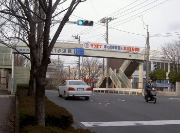 ここは横浜ゴム製造線跡になります。 市道駅前通りに架かる八幡第1歩道橋の真下を 踏切で渡っていました。 こちらも痕跡は全くありません。 |